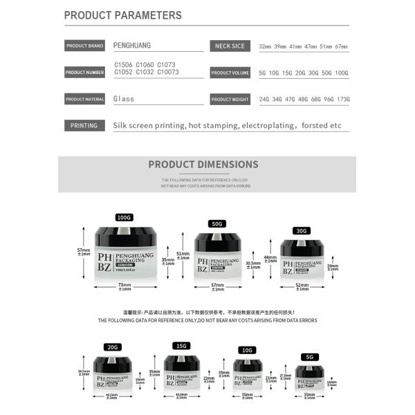 Whether you are a skincare enthusiast, a professional makeup artist, or a beauty brand looking for reliable packaging solutions, the YUHUA Cream Glass Jars in models C1507, C1506, C1060, C1073, C10502, C1032, and C10073 are the perfect choice for your cosmetic storage needs.