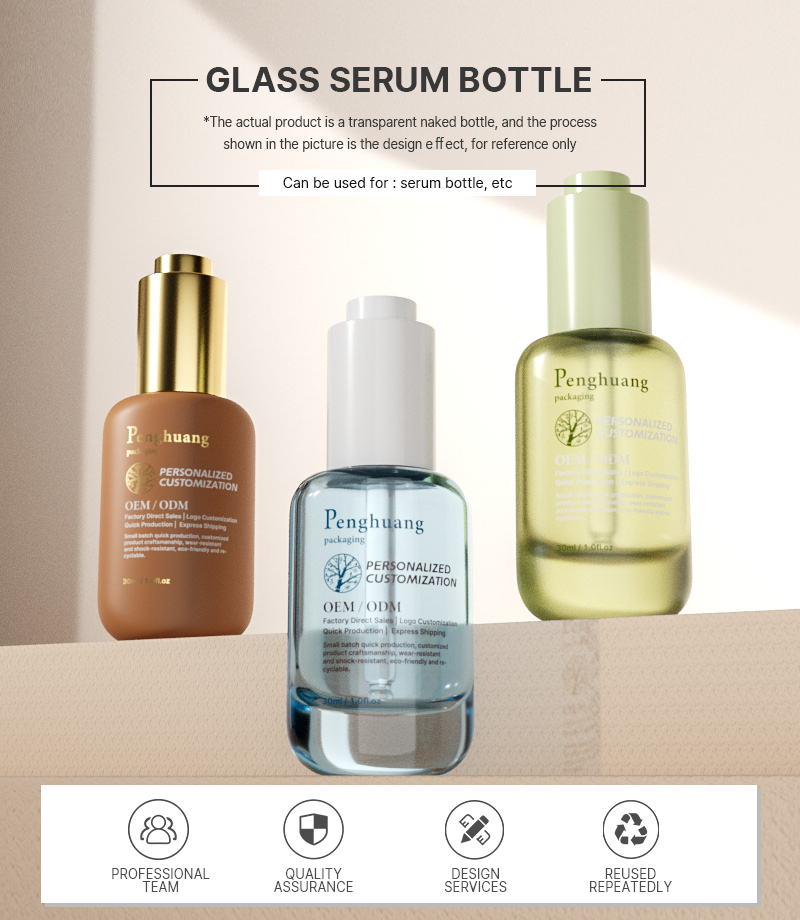 Overall, our Serum Dropper Bottles offer a combination of versatility, customization, and quality that sets them apart as the ideal packaging solution for your oil serums. Trust in our expertise and commitment to excellence to enhance the appeal and functionality of your skincare products with these premium glass serum bottles.