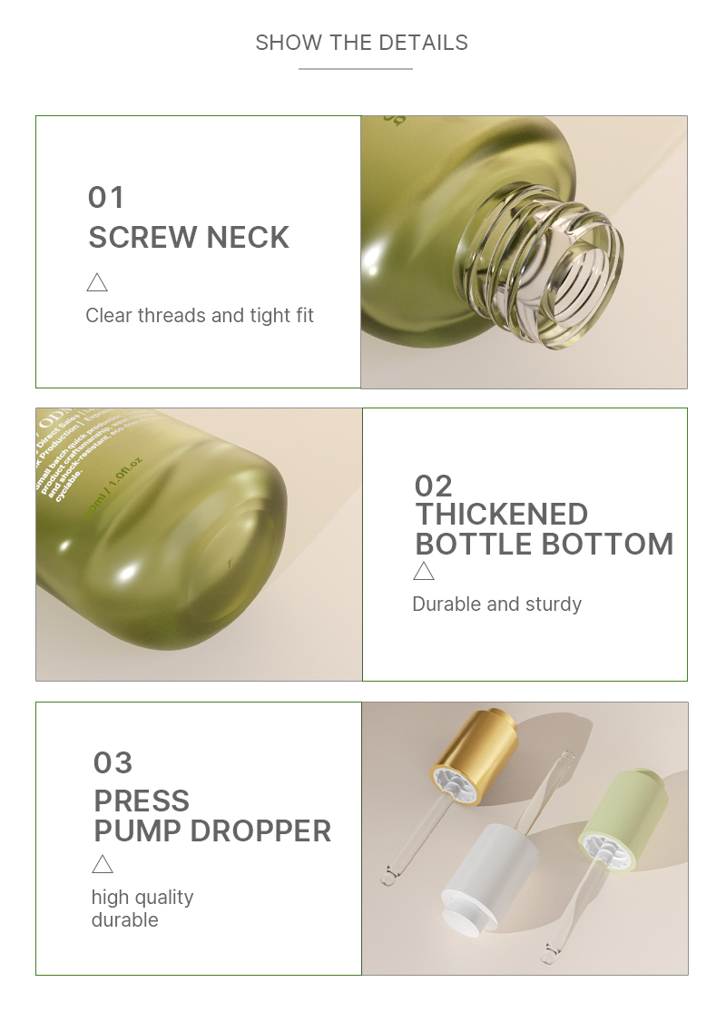 Custom Glass Serum Dropper Bottles 30ml Green Hiar Oil Glass Bottle With Press Dropper Images |